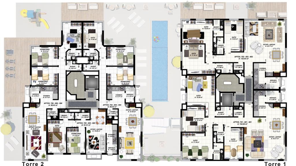 De 108,86 m² a 166,95 m² com 2, 3 ou 4 dormitórios