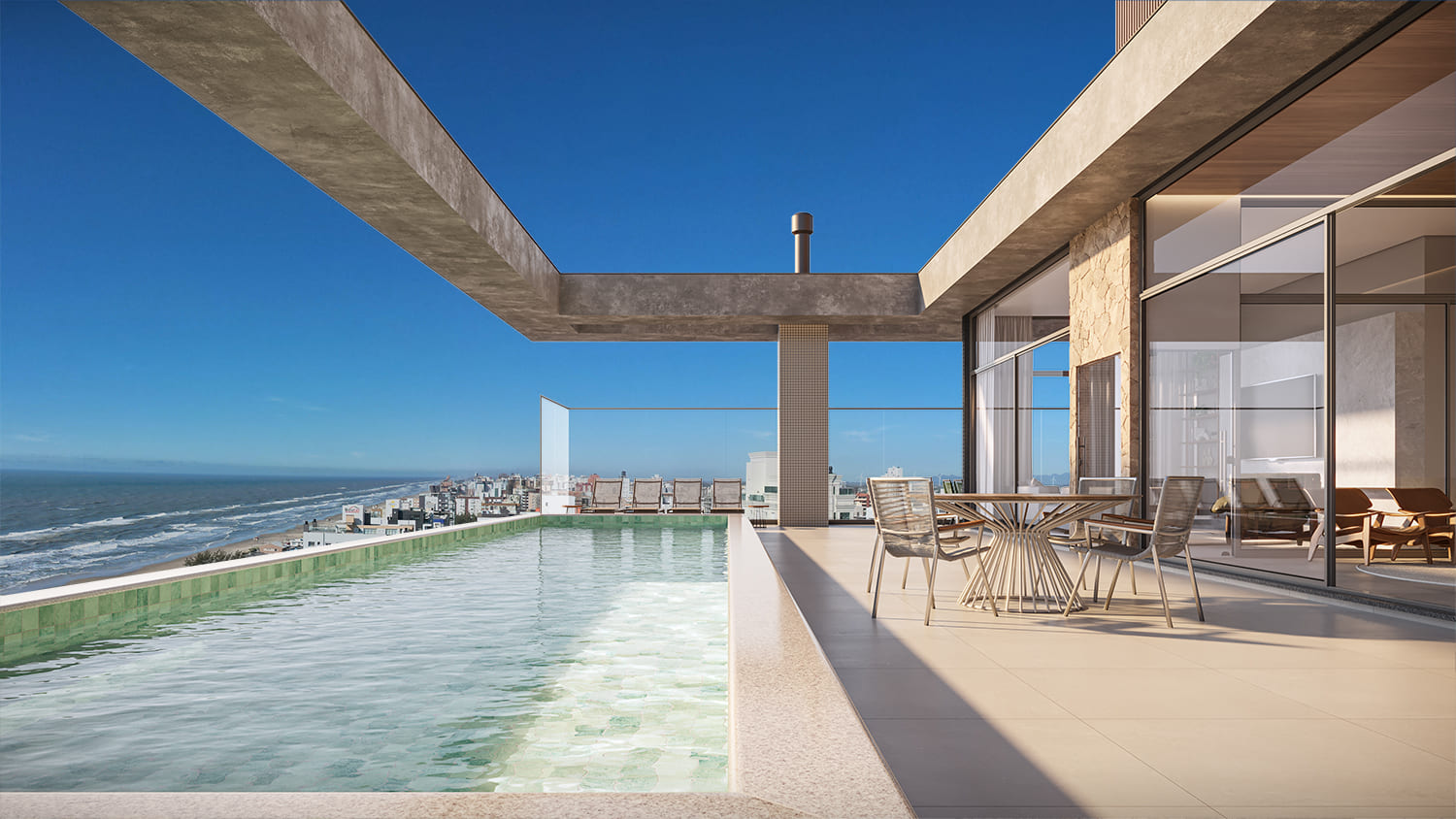 O rooftop wellness do Soia Palace é um convite para relaxar, respirar e viver momentos que renovam as energias e ressignificam o tempo. Pensado para inspirar pausas e novos respiros, o circuito de bem-estar integra arquitetura, sensações e paisagem para revelar uma experiência genuína de equilíbrio. Um espaço criado para desacelerar e renovar corpo e mente em harmonia com a luz, a matéria e o horizonte.